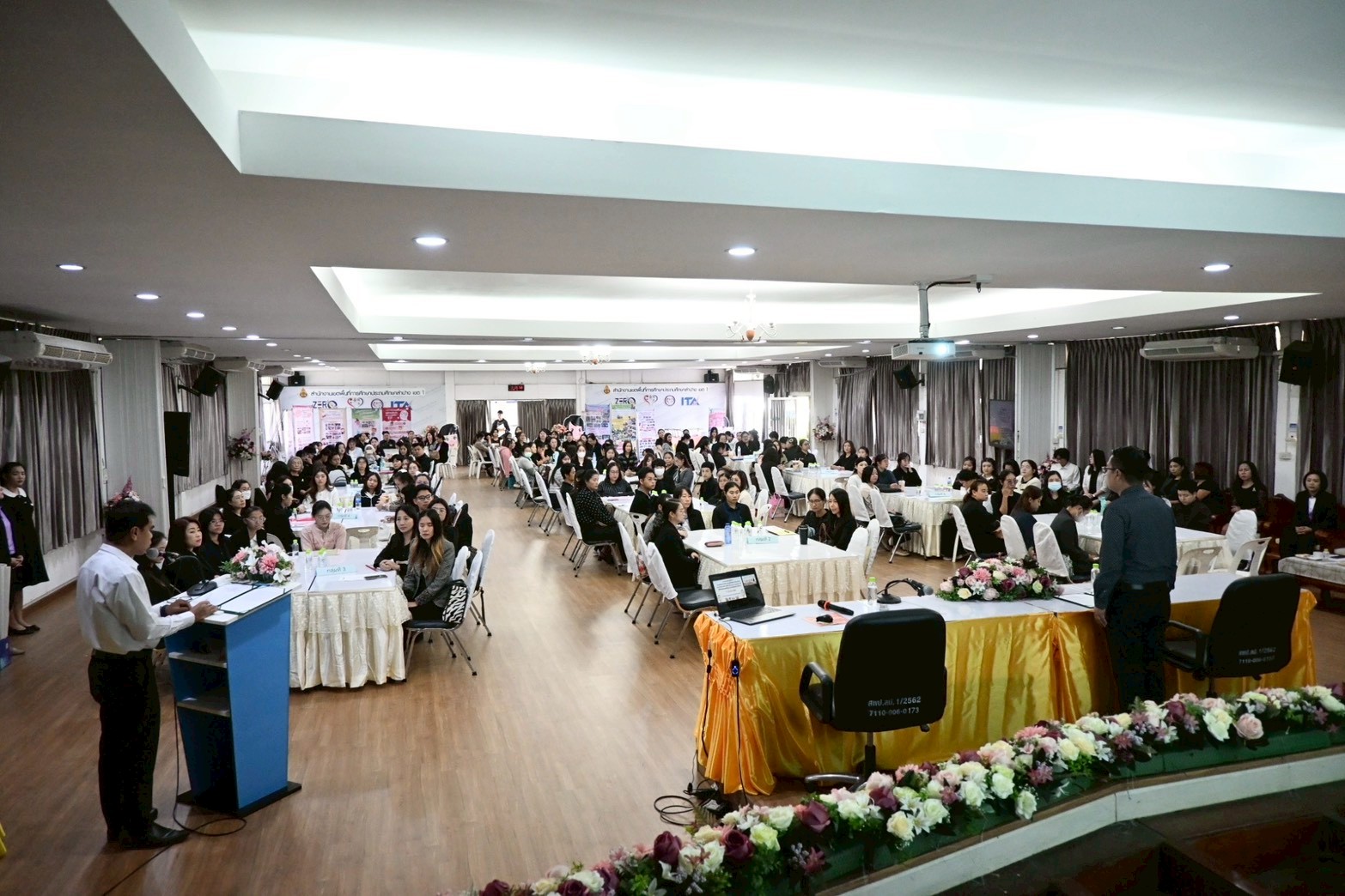 วันที่ 12 มีนาคม 2569 นายสยามรัฐ กุลประดิษฐ์ ผู้อำนวยการสำนักงานเขตพื้นที่การศึกษาประถมศึกษาลำปาง เขต 1 เป็นประธานในพิธีเปิดการอบรมเชิงปฏิบัติการการเสริมสร้างศักยภาพครูเพื่อการพัฒนาทักษะทางสมอง ในการบริหารจัดการชีวิต (Executive Function : EF) เพื่อการป้องกันและแก้ไขปัญหายาเสพติดในสถานศึกษา โดยมี นายเกรียงศักดิ์ เกษทองมา รองผู้อำนวยการสำนักงานเขตพื้นที่การศึกษาประถมศึกษาลำปาง เขต 1 เป็นผู้กล่าวรายงาน ผู้เข้าร่วมการอบรม ประกอบด้วย ครูผู้สอนปฐมวัย โรงเรียนละ 1 คน จำนวน 78 คน และครูผู้สอนชั้นประถมศึกษาปีที่ 1 โรงเรียนละ 1 คน จำนวน 82 คน รวมทั้งสิ้น 160 คน ทั้งนี้ ได้รับความอนุเคราะห์วิทยากรจาก นางเขมจิรา เกษมสุขพัชรา ศึกษานิเทศก์ชำนาญการพิเศษ สพป.ลำปาง เขต 1 และคณะ การอบรมนี้มีโรงเรียนที่เป็นแกนนำในการขับเคลื่อนการพัฒนาทักษะทางสมอง (Executive Function : EF) ระดับปฐมวัย ได้แก่ โรงเรียนบ้านปงสนุก โรงเรียนอนุบาลงาว (ภาณุนิยม) และโรงเรียนบ้านใหม่รัตนโกสินทร์ ร่วมแลกเปลี่ยนเรียนรู้ในการอบรมวันนี้ และในโอกาสเดียวกันนี้ ผอ.สพป.ลำปาง เขต 1 ได้เยี่ยมชมนิทรรศการของโรงเรียนแกนนำฯ ณ ห้องประชุมคุรุมนตรี สำนักงานเขตพื้นที่การศึกษาประถมศึกษาลำปาง เขต 1