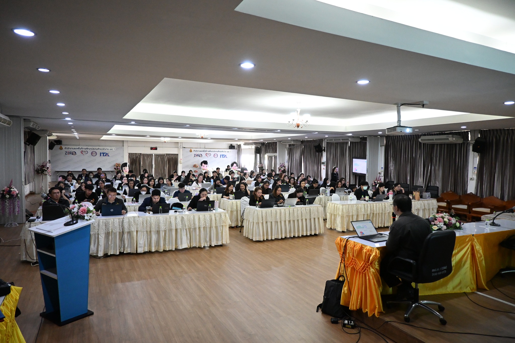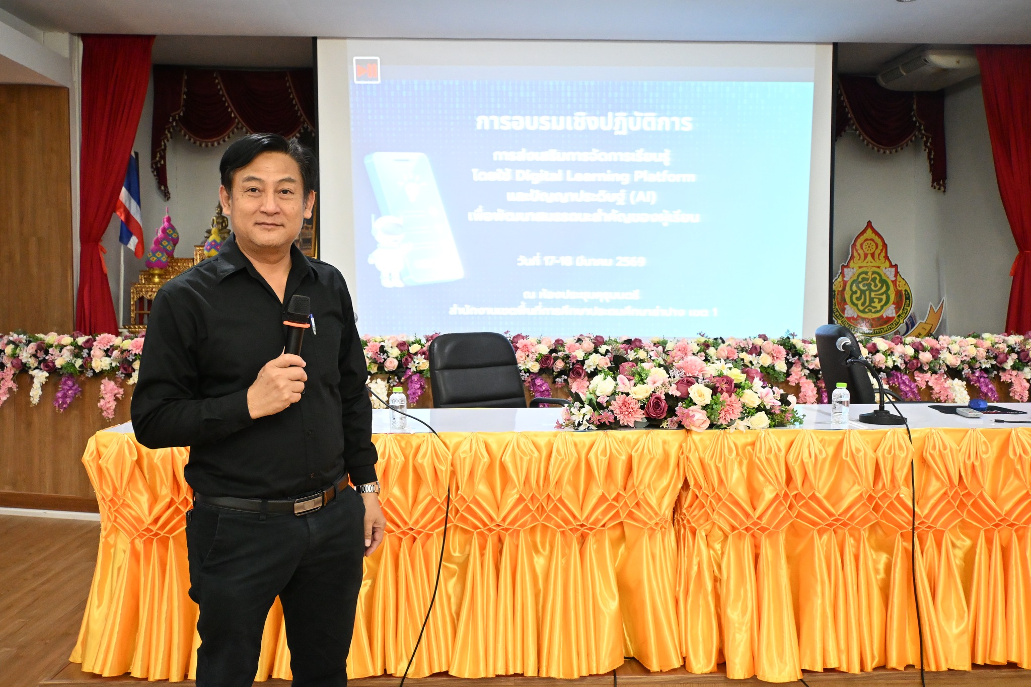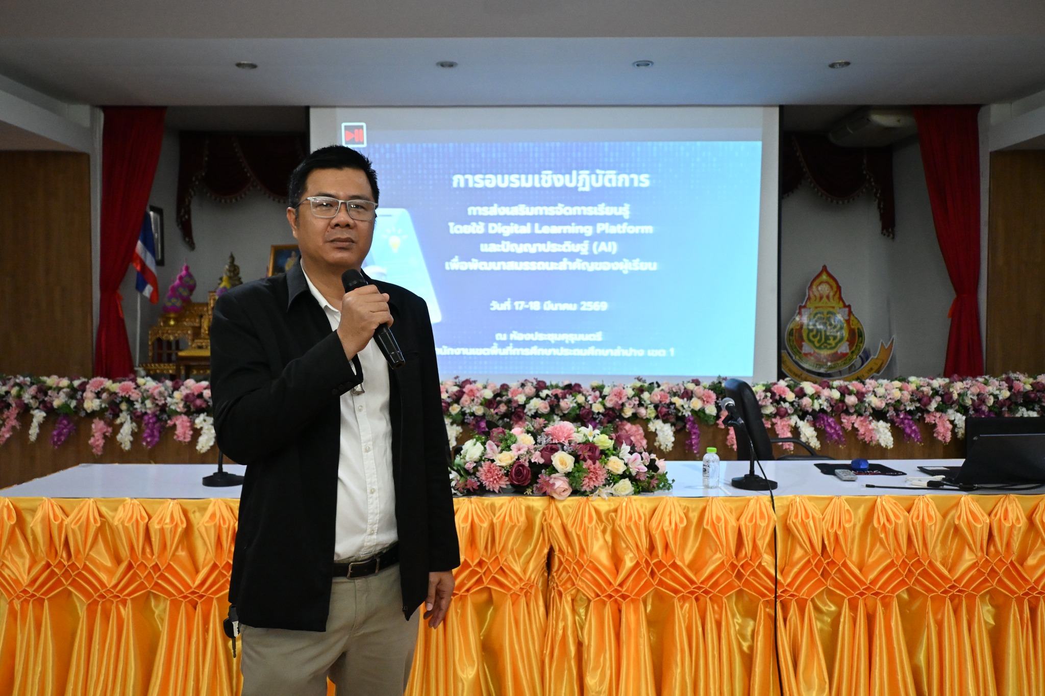 วันที่ 17 มีนาคม 2569 สำนักงานเขตพื้นที่การศึกษาประถมศึกษาลำปาง เขต 1 จัดอบรมเชิงปฏิบัติการ “การส่งเสริมการจัดการเรียนรู้ โดยใช้ Digital Learning Platform และปัญญาประดิษฐ์ (AI) เพื่อพัฒนาสมรรถนะสำคัญของผู้เรียน”เป็นวันที่สอง ในวันนี้ผู้เข้าร่วมอบรม ประกอบด้วยครูผู้สอนจากโรงเรียนในสังกัด จำนวน 85 คน ในโอกาสนี้ นายสยามรัฐ กุลประดิษฐ์ ผู้อำนวยการสำนักงานเขตพื้นที่การศึกษาประถมศึกษาลำปาง เขต 1 ได้พบปะและให้กำลังใจคณะวิทยากรและผู้เข้ารับการอบรม คณะวิทยากรได้แก่ นายพงษ์ศักดิ์ ทรายเป็ง นายวรวัช ธรรมวงศ์ และ นายวสันต์ แปงจิตต์ ศึกษานิเทศก์ชำนาญการพิเศษ สพป.ลำปาง เขต 1 และครูแกนนำจากโรงเรียนในสังกัด จำนวน 2 คน เป็นวิทยากร ณ ห้องประชุมคุรุมนตรี สำนักงานเขตพื้นที่การศึกษาประถมศึกษาลำปาง เขต 1