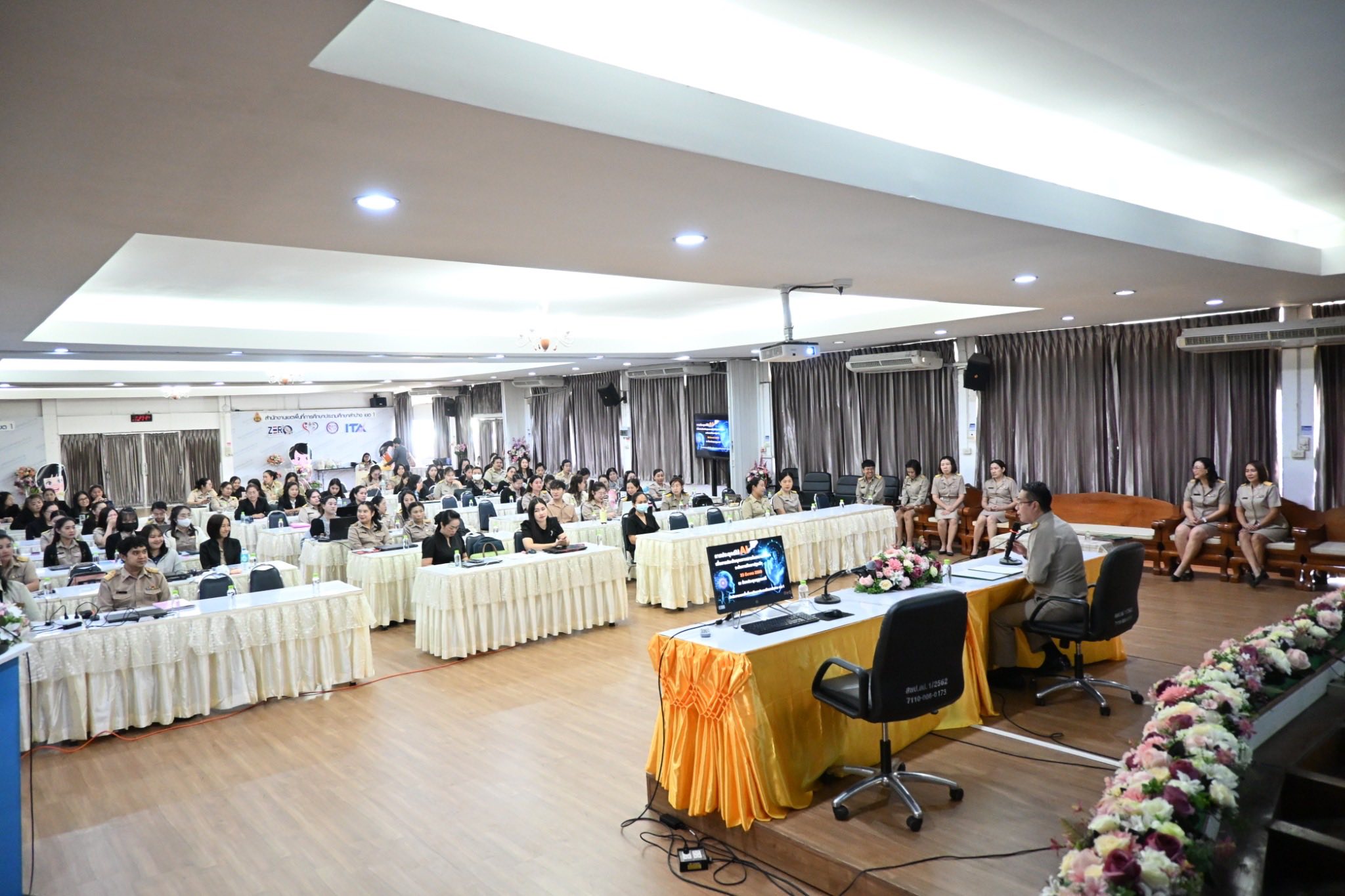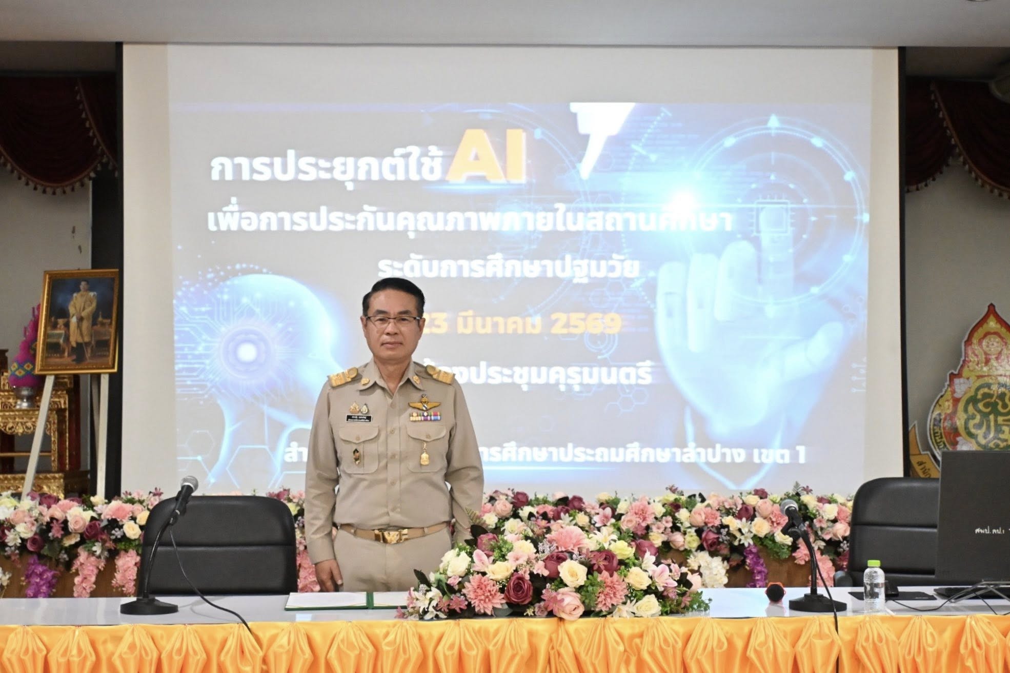วันที่ 23 มีนาคม 2569 เวลา 09.00 น. นายสยามรัฐ กุลประดิษฐ์ ผู้อำนวยการสำนักงานเขตพื้นที่การศึกษาประถมศึกษาลำปาง เขต 1 เป็นประธานเปิดการประชุมเชิงปฏิบัติการพัฒนาระบบการประกันคุณภาพการศึกษาภายในสถานศึกษาด้วยปัญญาประดิษฐ์ (AI) ระดับการศึกษาปฐมวัย โดยมี นางสาววัชรี เหล่มตระกูล ผู้อำนวยการกลุ่มนิเทศ ติดตามและประเมินผลการจัดการศึกษา เป็นผู้กล่าวรายงาน มีวัตถุประสงค์เพื่อส่งเสริมและพัฒนาระบบการประกันคุณภาพภายในสถานศึกษาของสถานศึกษาในสังกัดให้เข้มแข็งและมีประสิทธิภาพ และส่งเสริมพัฒนาสรรถนะของครูผู้รับผิดชอบงานประกันคุณภาพการศึกษาด้านการใช้เทคโนโลยีดิจิทัล และ AI ในการปฏิบัติงานด้านการประกันคุณภาพการศึกษา ผู้เข้าร่วมการประชุม ประกอบด้วย ครูผู้รับผิดชอบงานประกันคุณภาพการศึกษา ระดับการศึกษาปฐมวัยของสถานศึกษาในสังกัด จำนวน 100 คน ทั้งนี้วิทยากร ได้แก่ ศึกษานิเทศก์ กลุ่มงานส่งเสริมพัฒนาระบบประกันคุณภาพการศึกษา ณ ห้องประชุมคุรุมนตรี สำนักงานเขตพื้นที่การศึกษาประถมศึกษาลำปาง เขต 1