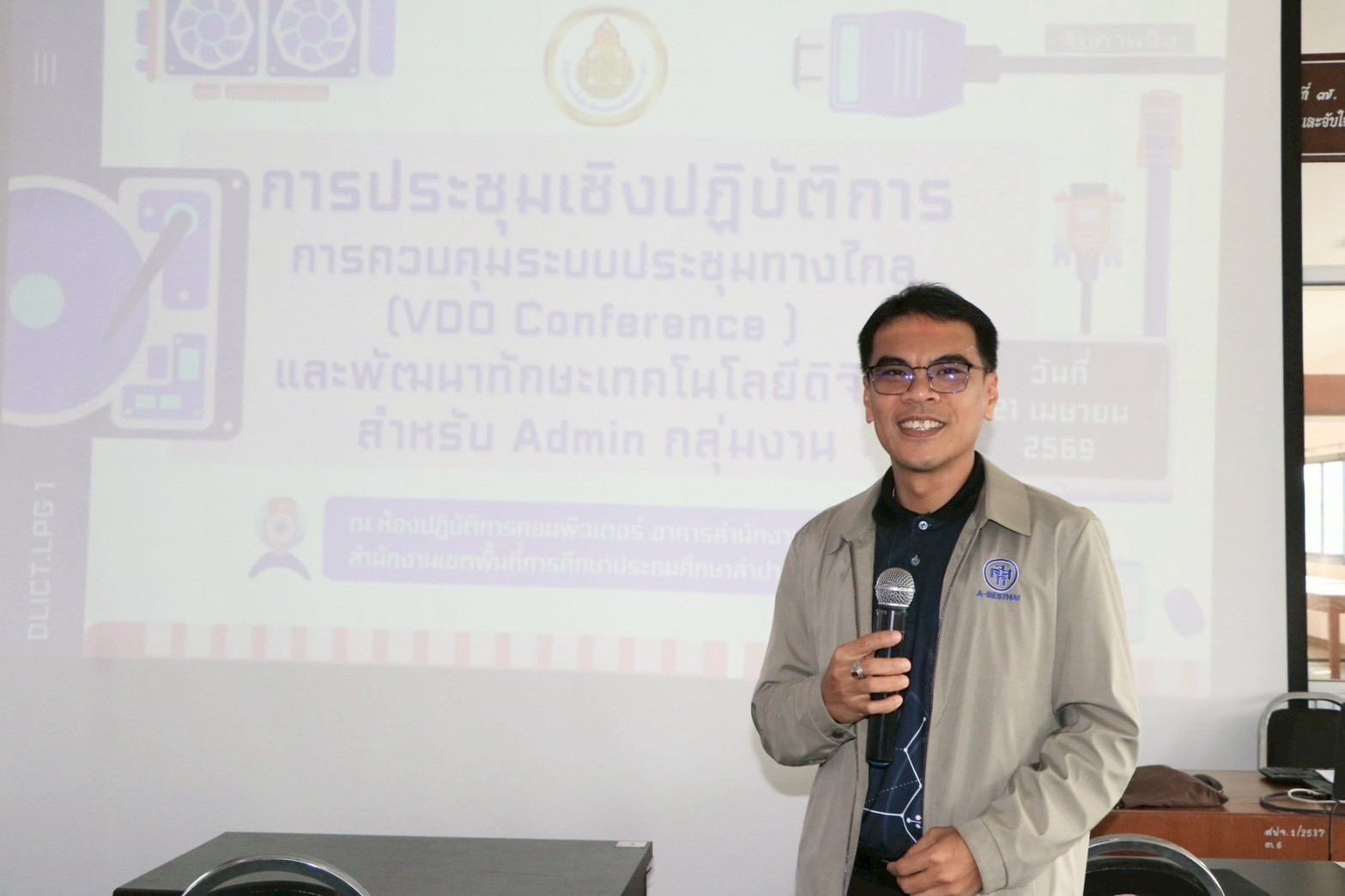 วันที่ 21 เมษายน 2569 เวลา 09.00 น. นายสยามรัฐ กุลประดิษฐ์ ผู้อำนวยการสำนักงานเขตพื้นที่การศึกษาประถมศึกษาลำปาง เขต 1 มอบหมายให้นายเกรียงศักดิ์ เกษทองมา รองผู้อำนวยการการสำนักงานเขตพื้นที่การศึกษาประถมศึกษาลำปาง เขต 1 เป็นประธานในการประชุมเชิงปฏิบัติการควบคุมระบบการประชุมทางไกล (VDO Conference) และพัฒนาทักษะเทคโนโลยีดิจิทัล สำหรับ Admin กลุ่มงาน จัดโดย กลุ่ม DLICT สำหรับการอบรมครั้งนี้มี บุคลากรในสังกัด (Admin กลุ่มงาน) เข้าร่วม โดยบรรยากาศเต็มไปด้วยการเรียนรู้และการฝึกปฏิบัติจริง เพื่อนำทักษะที่ได้ไปต่อยอดในการพัฒนาองค์กรสู่การเป็น Digital Office อย่างสมบูรณ์แบบต่อไป ณ ห้องปฏิบัติการคอมพิวเตอร์ อาคารสำนักงานชั้น 3 สำนักงานเขตพื้นที่การศึกษาประถมศึกษาลำปาง เขต 1