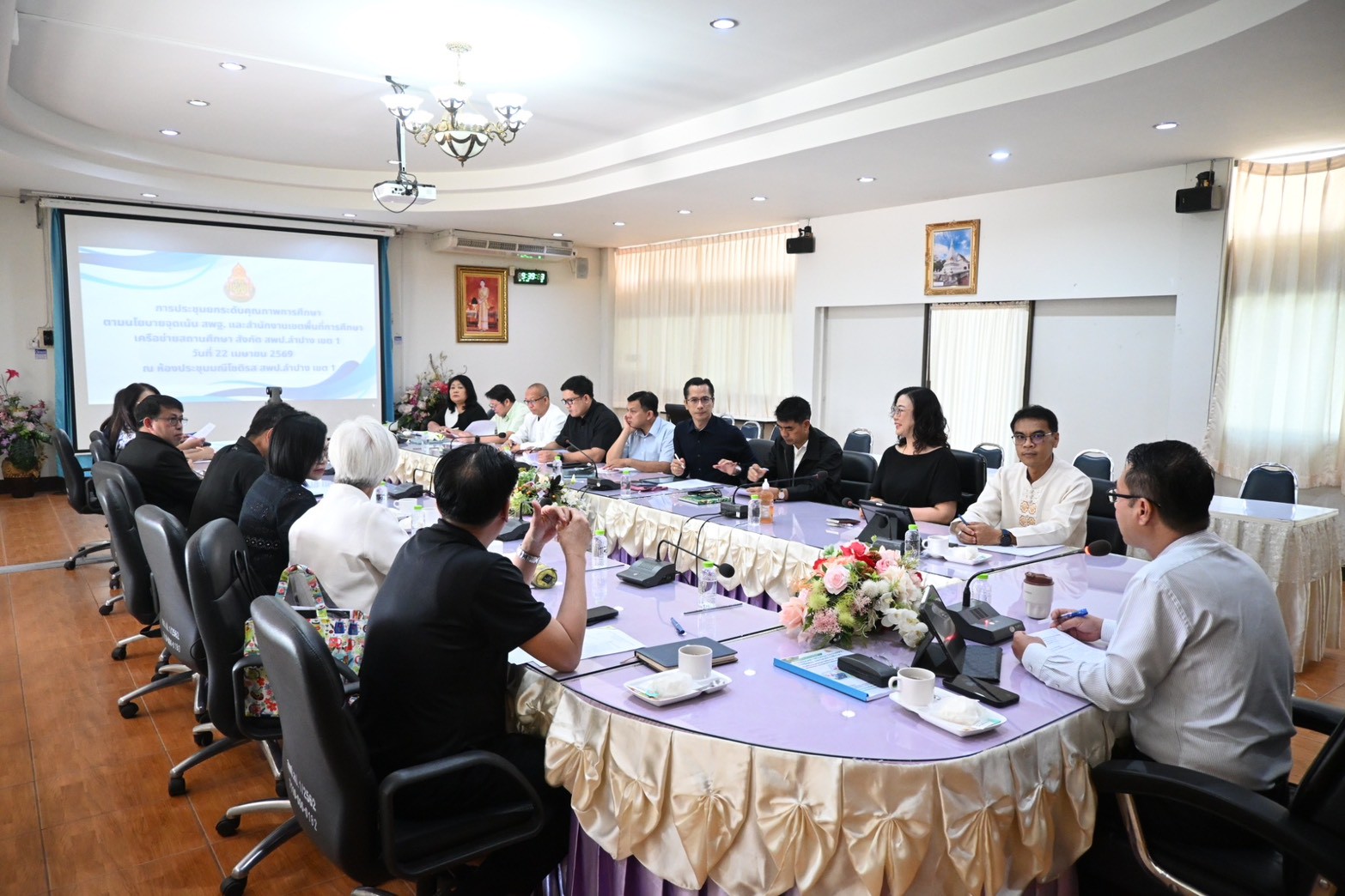 วันที่ 22 เมษายน 2569 เวลา 09.00 น. นายสยามรัฐ กุลประดิษฐ์ ผู้อำนวยการสำนักงานเขตพื้นที่การศึกษาประถมศึกษาลำปาง เขต 1 เป็นประธานการประชุมยกระดับคุณภาพการศึกษา ตามนโยบายจุดเน้น สพฐ. และสำนักงานเขตพื้นที่การศึกษา เครือข่ายสถานศึกษา สังกัด สพป.ลำปาง เขต 1 ผู้เข้าร่วมประชุมได้แก่ ทีมบริหารองค์กร และประธานเครือข่าย สังกัด สพป.ลำปาง เขต 1 เพื่อแจ้งวาระการศึกษาและนโยบายการศึกษาของ รัฐมนตรีว่าการกระทรวงศึกษาธิการ นายประเสริฐ จันทรรวงทอง และข้อราชการอื่น ณ ห้องประชุมมณีโชติรส สำนักงานเขตพื้นที่การศึกษาประถมศึกษาลำปาง เขต 1