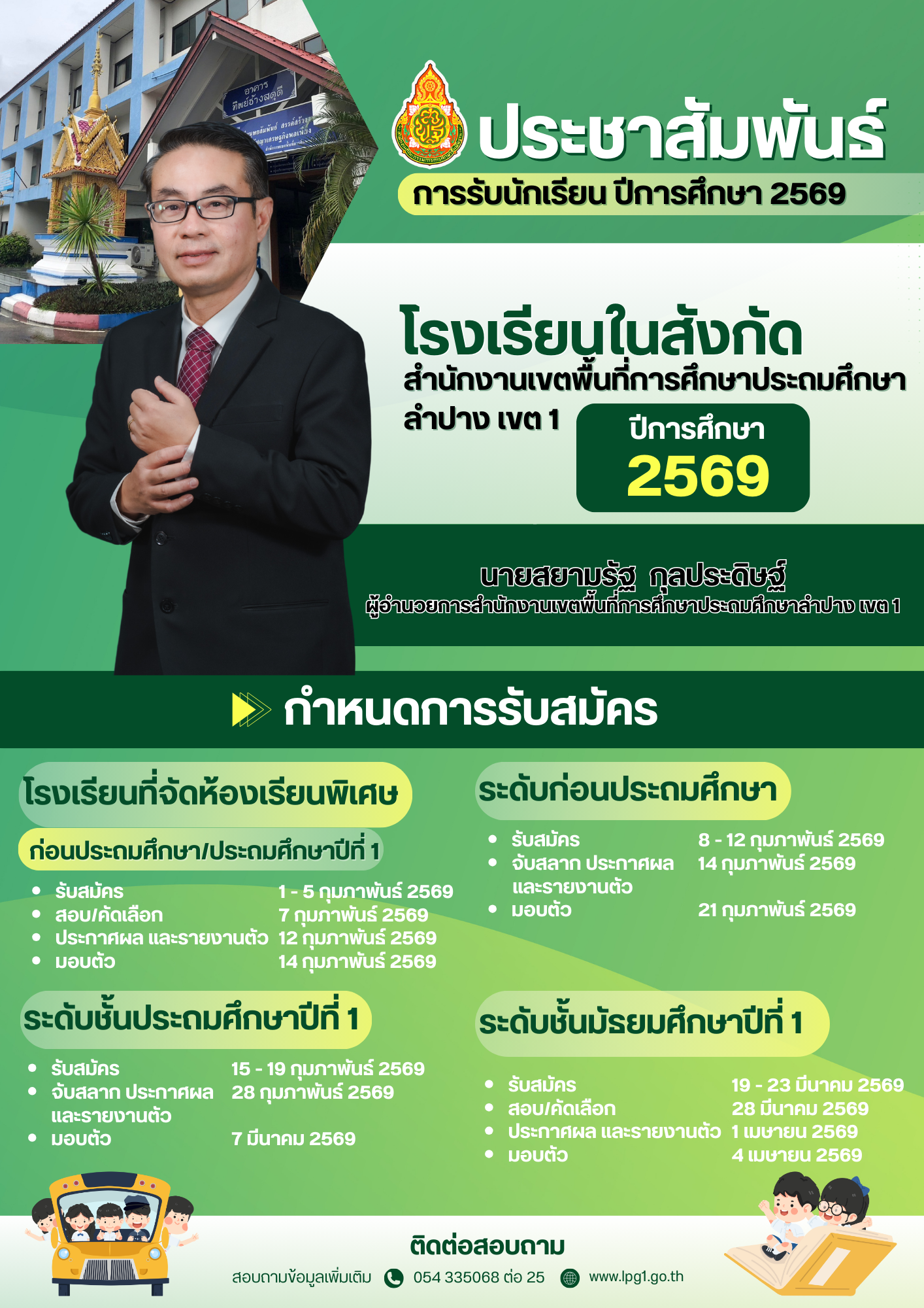 ประชาสัมพันธ์การรับนักเรียน ปีการศึกษา 2569 และกำหนดการรับสมัคร